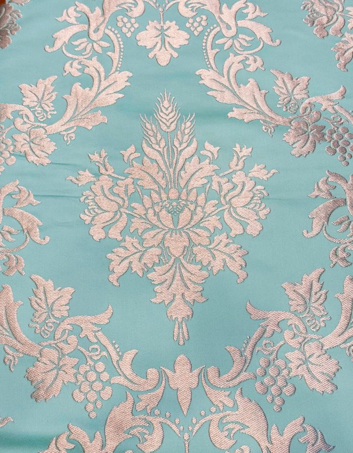 Corte de tela de valenciana de 5,5 metros con fondo de color verde agua y colorido T49722