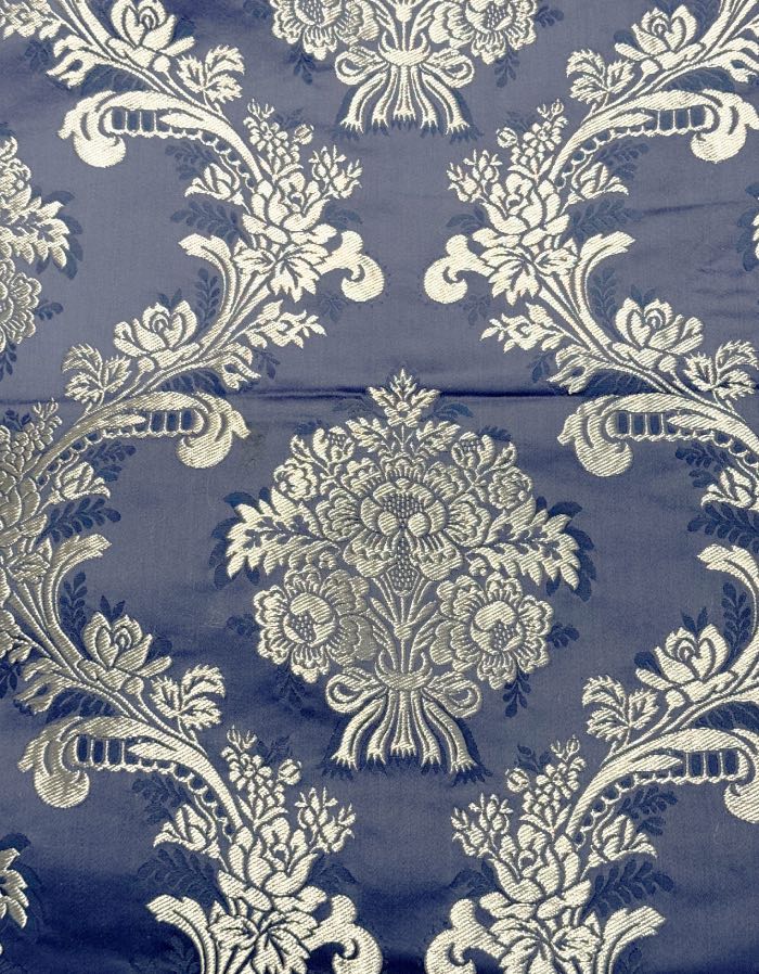 Corte de tela de valenciana de 5,5 metros con fondo de color prusia y colorido T51395.