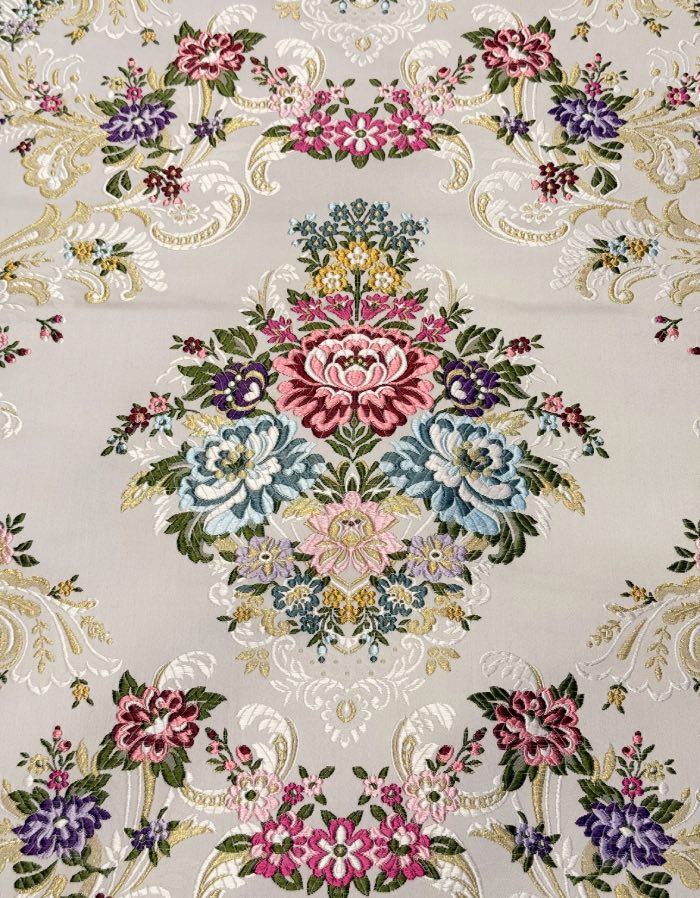 Corte de tela de valenciana de 5,5 metros con fondo de color blanco con colorido T54730