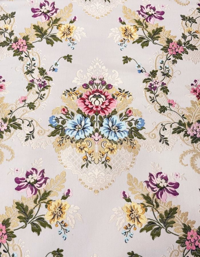 Corte de tela de valenciana de 5,5 metros con fondo de color blanco con colorido T54731