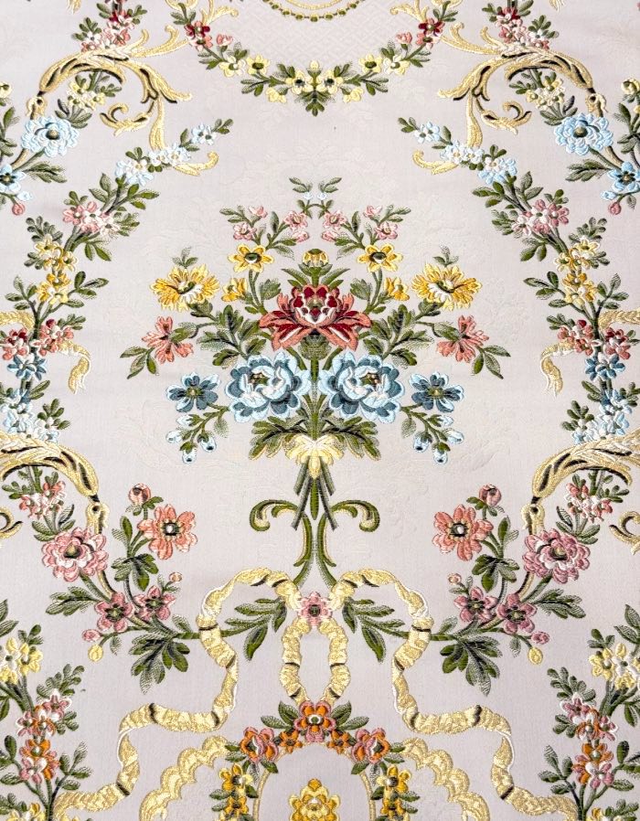Corte de tela de valenciana de 5,5 metros con fondo de color blanco con colorido T54733