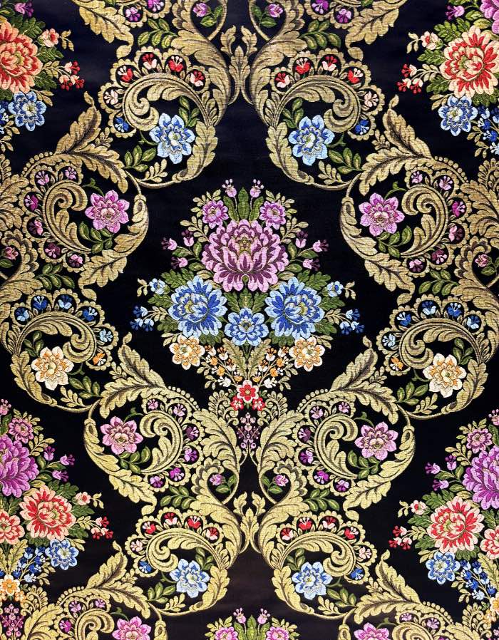 Corte valenciana de 5.5 metros con fondo negro y metal oro.