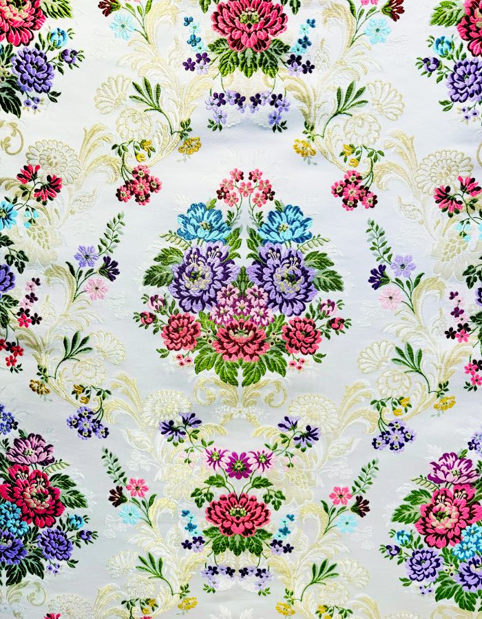 Corte de tela de valenciana de 5,5 metros con fondo de color blanco y colorido T51924