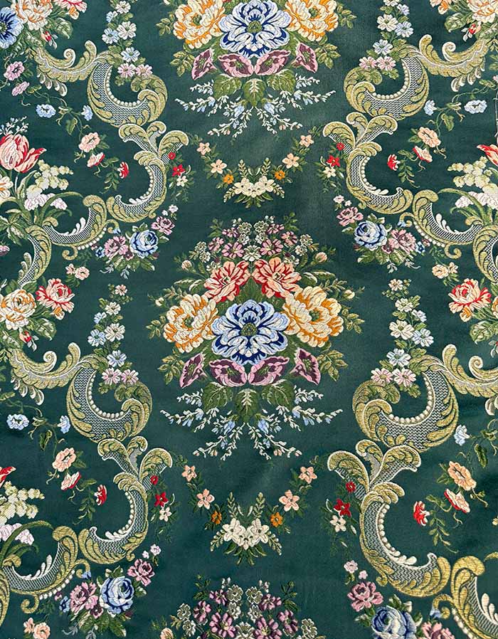 Corte de tela valenciana de 5,5 metros. Fondo de color vallesa y trama oro.