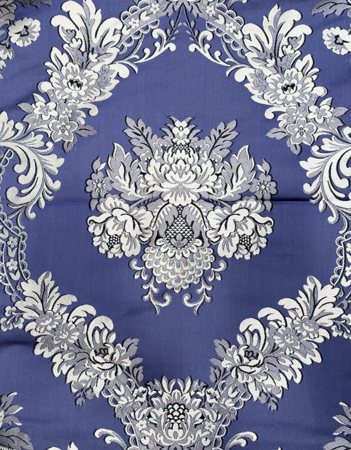 Corte de tela de valenciana de 5,5 metros con fondo de color prusia y colorido T48725.