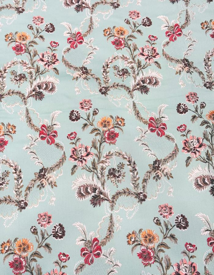 Corte de tela valenciana de 5,5 metros. Fondo de color verde agua y T54950.