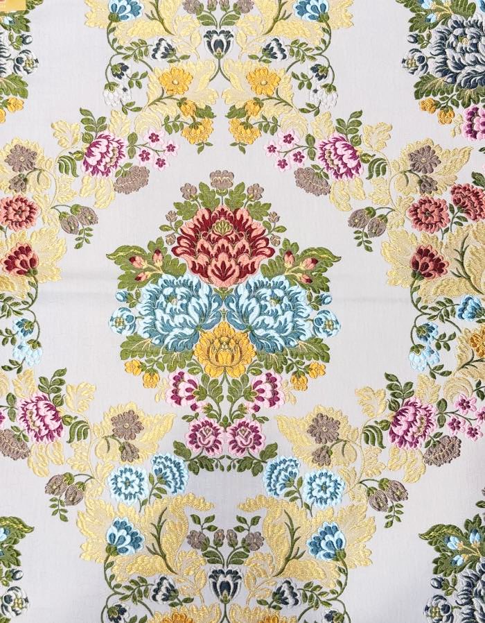 Corte de tela de valenciana de 5,5 metros con fondo de color blanco con colorido T54741