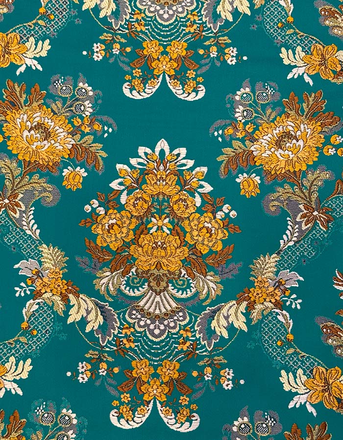 Corte de tela valenciana de 5,5 metros. Fondo de color turquesa y T55217.