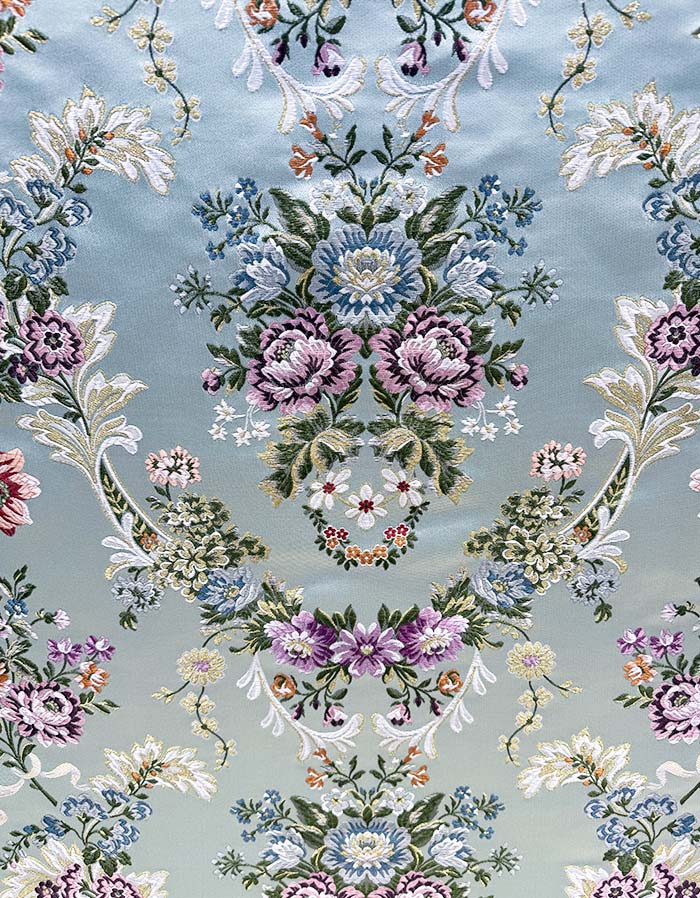 Corte de tela valenciana de 5,5 metros. Fondo de color nectaris y trama oro.