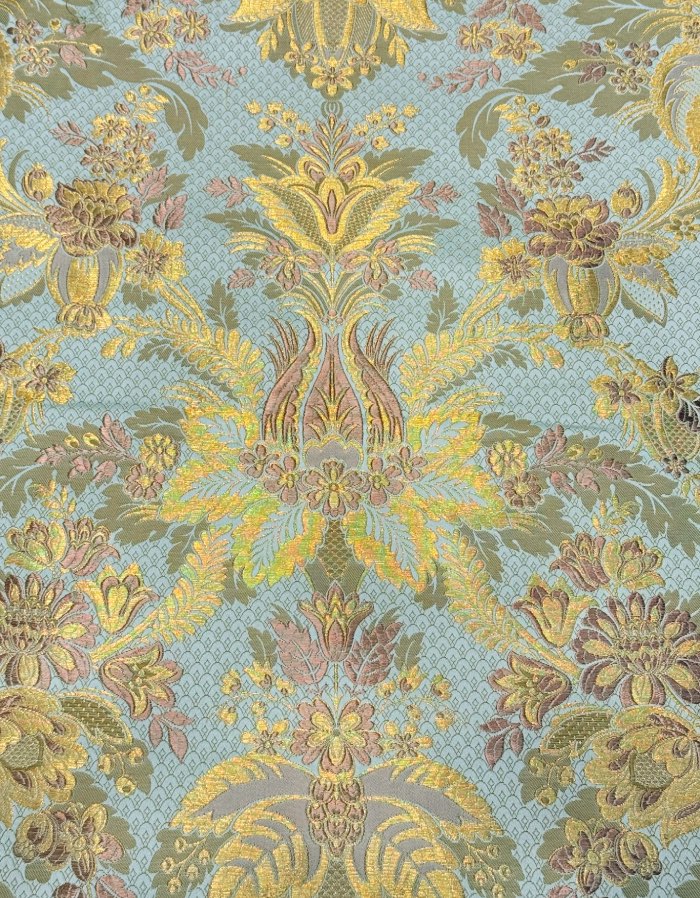 Corte de tela valenciana de 5,5 metros. Fondo de color verde agua y T54948.