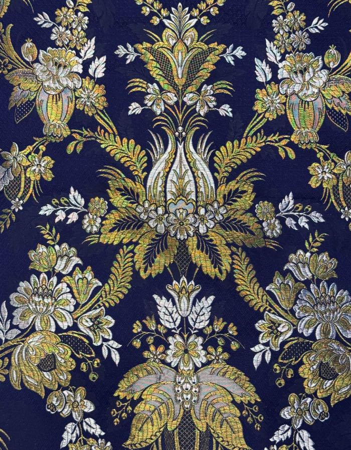 Corte de tela valenciana de 5,5 metros. Fondo de color marino y T55034.