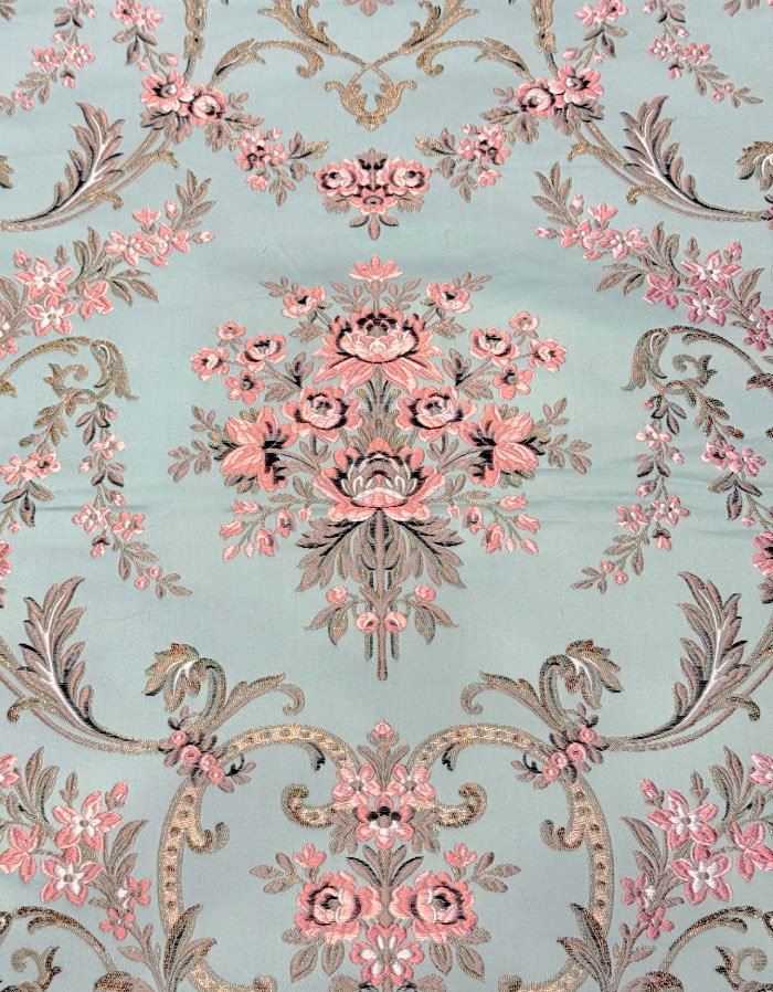 Corte de tela valenciana de 5,5 metros. Fondo de color verde agua y T54947.