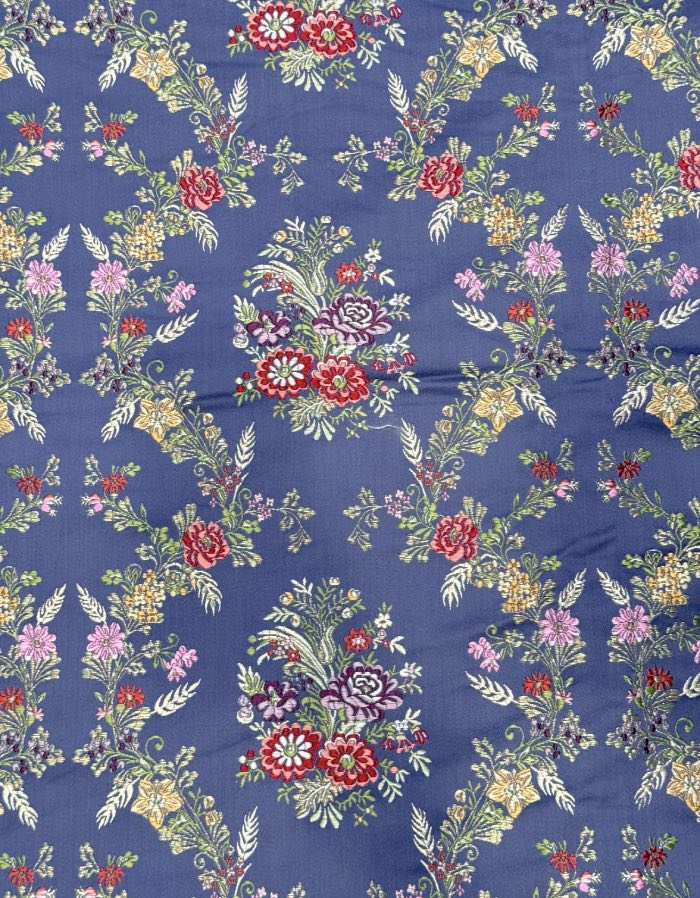 Corte de tela de valenciana de 5,5 metros con fondo de color prusia y colorido T55068.