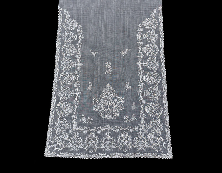 Juego de manteletas de muselina rustica (pico y delantal) en talla 80. Bordado en beige claro con lentejuela oro.