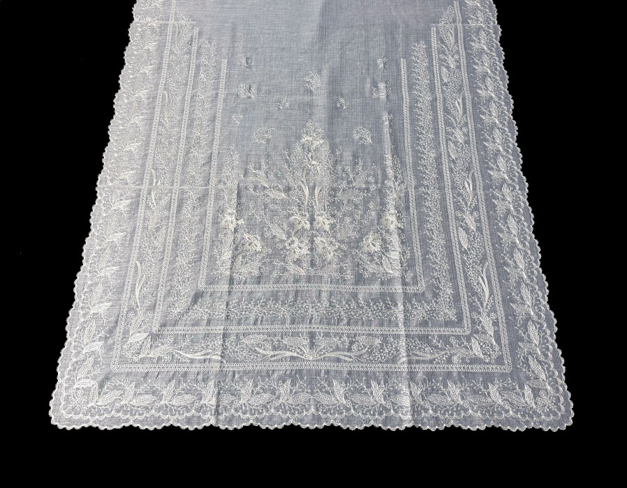 Juego de manteleta tossa (pico y delantal) en talla 110. Bordado en beige sin lentejuelas.