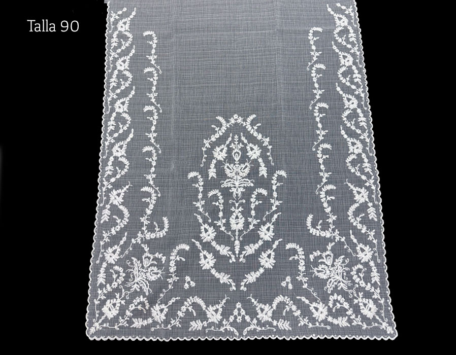Juego de manteleta (pico y delantal) en talla 90.Fabricado en muselina rustica y bordado en blanco con lentejuela en plata.