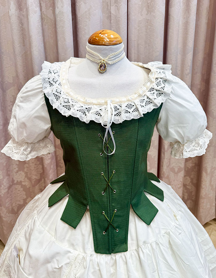 Justillo de huertana modelo ALMENAS.Confeccionado con el tejido simun en color verde.