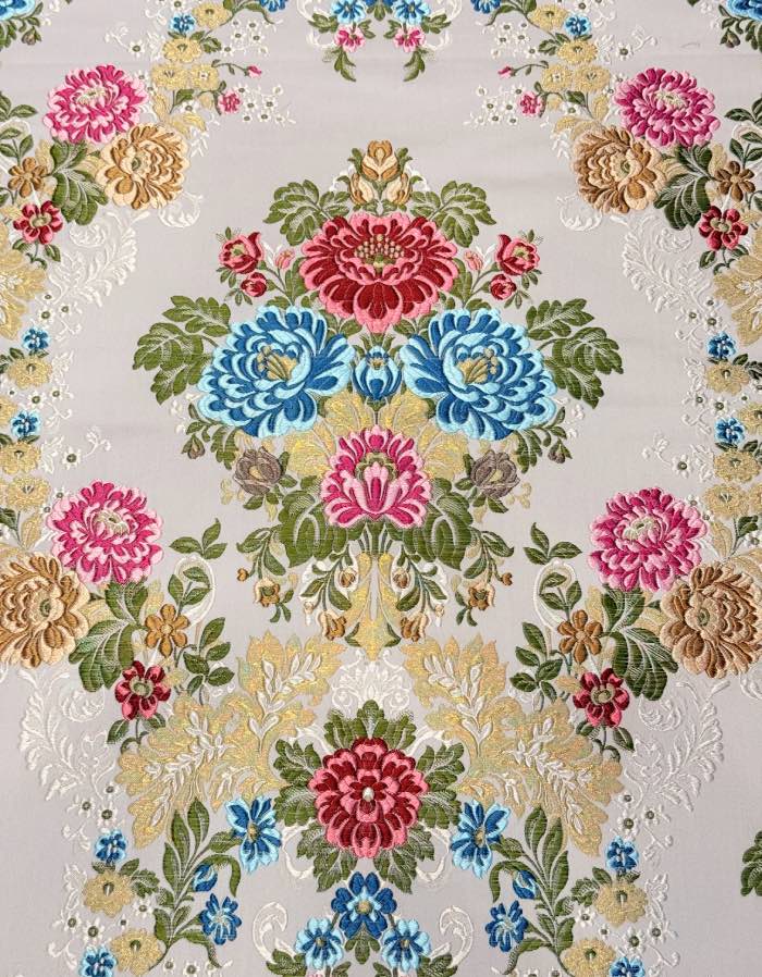 Corte de tela de valenciana de 5,5 metros con fondo de color blanco con colorido T54739