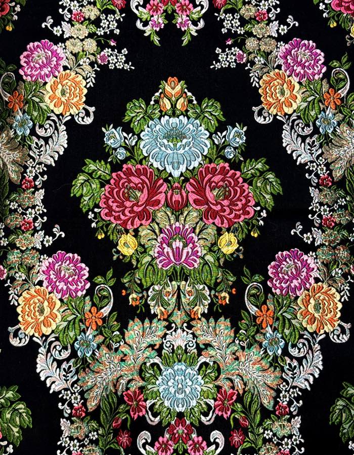 Corte de tela valenciana de 5,5 metros. Fondo de color negro y T55197.