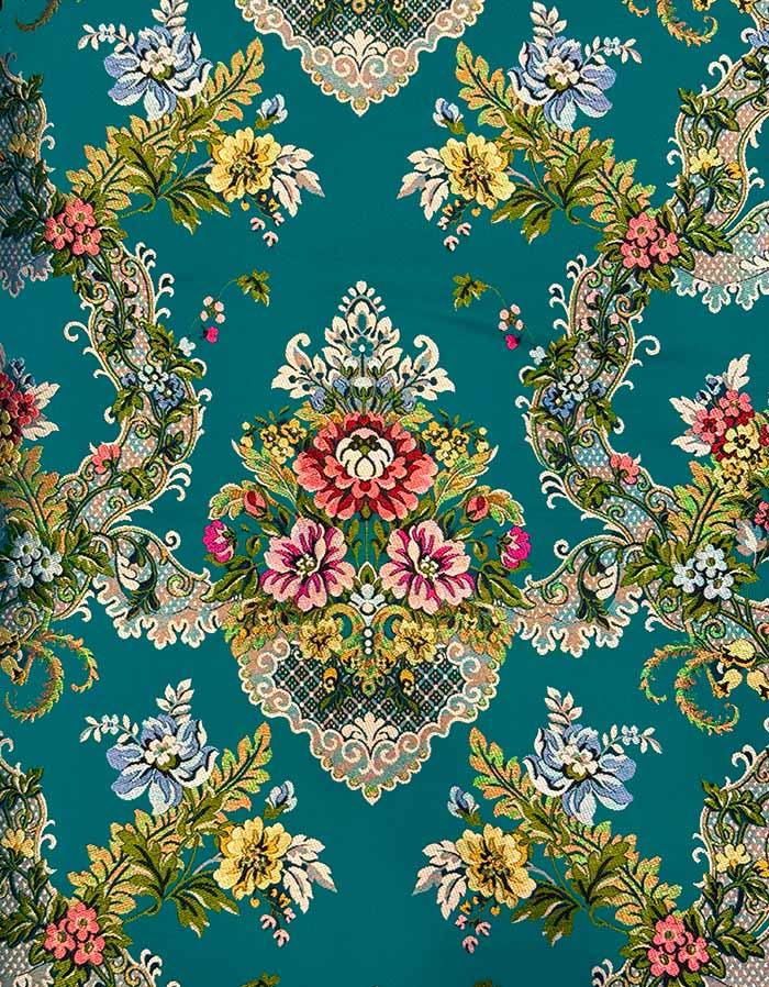 Corte de tela valenciana de 5,5 metros. Fondo de color turquesa y T55227.