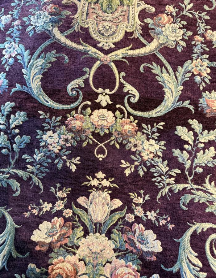 Corte de tela valenciana de chenilla de 6 metros. Fondo de color vino.