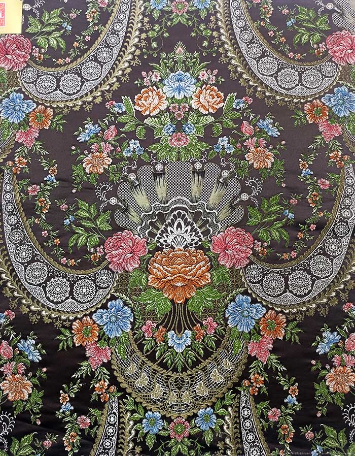 Corte estrecho de valenciana de 12 metros con fondo de color chocolate con trama oro
