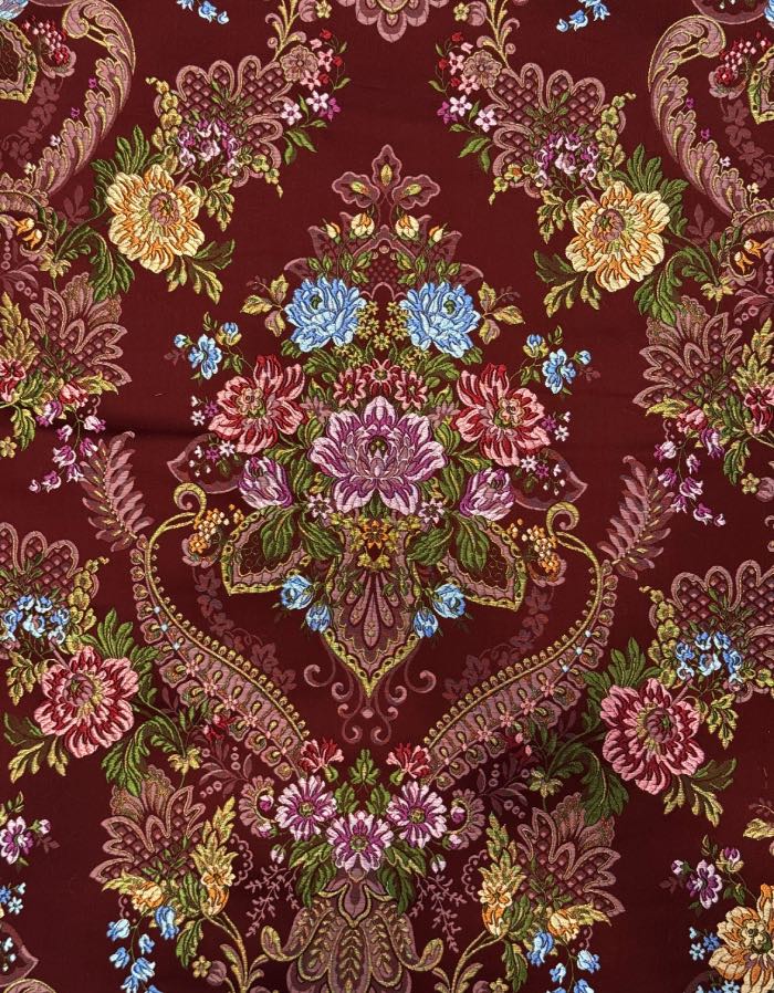 Corte de tela valenciana de 5,5 metros. Fondo de color berenjena y T52003.