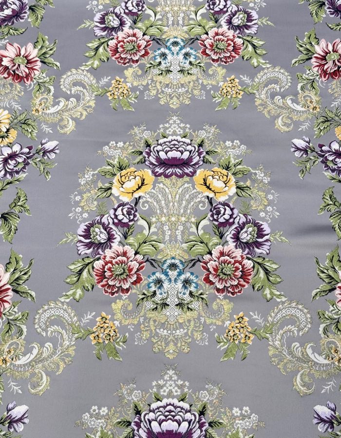 Corte de tela de valenciana estrecha de 12 metros con fondo de color gris y trama oro