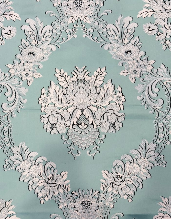 Corte de tela de valenciana de 5,5 metros con fondo de color verde agua y colorido T54952