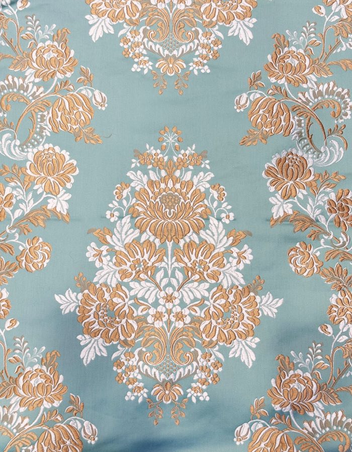 Corte de tela de valenciana de 5,5 metros con fondo de color verde agua y colorido T54953