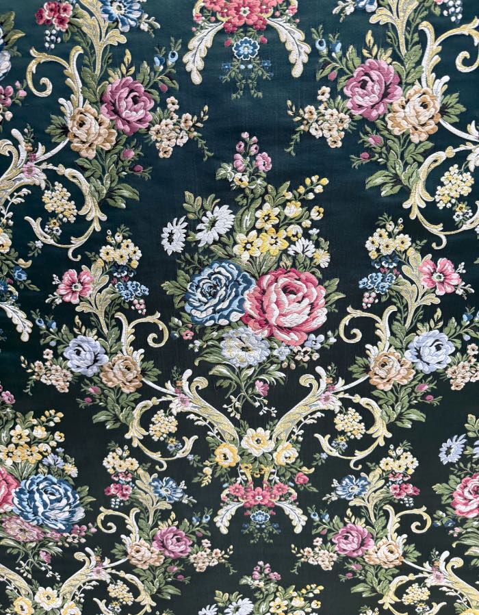 Corte de seda valenciana de 5.5 metros. Fondo de color verde alquimia y colorido T52455